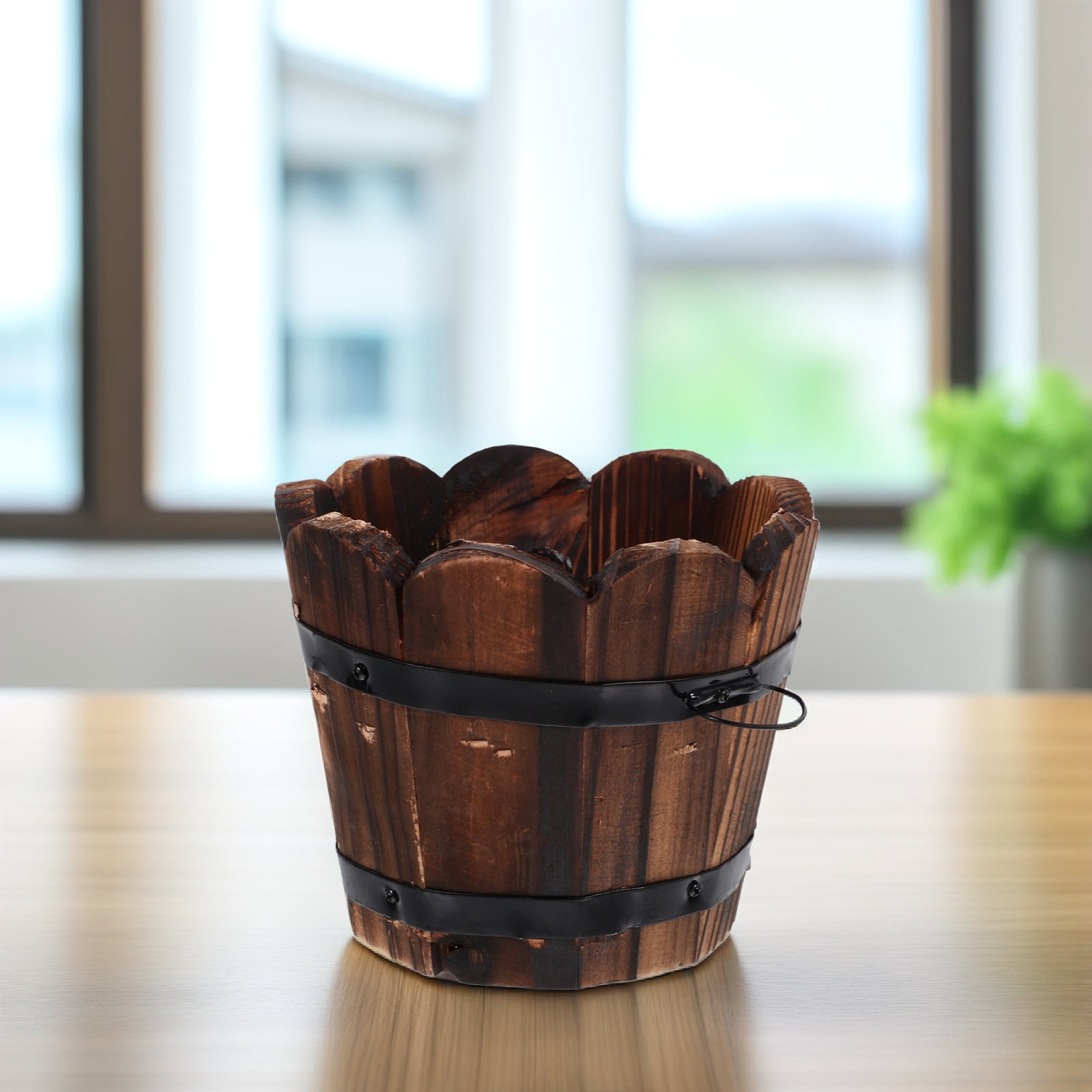 - The creative wooden flower pot is multi-functional, which can be used a bucket to store water or other items.- wood vegetable pot
